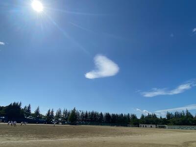 先日、本校の校庭で空を見上げたら、まるで空が微笑んでくれたかのような素敵な光景に