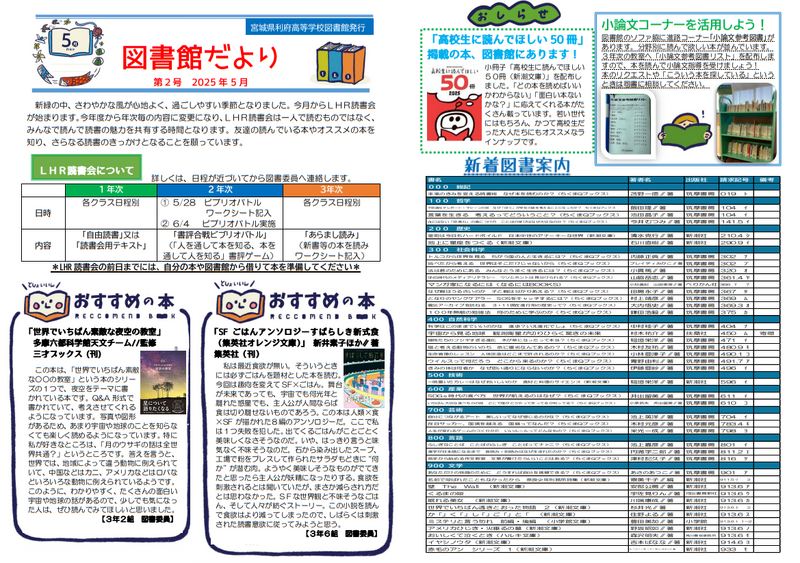 図書だより(第2号)2025.5..pdf ←クリックするとダウンロードできます。