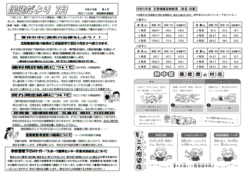 保健室よりお知らせ「保健だより7月」