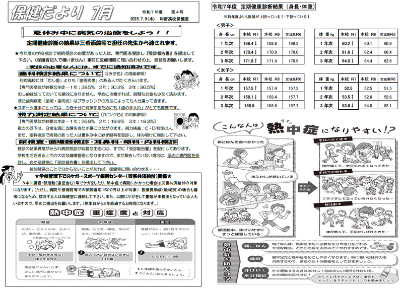 「保健だより7月」を発行しました。