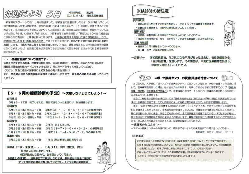 なお、休校にともない考査日程は以下のとおりに変更します。