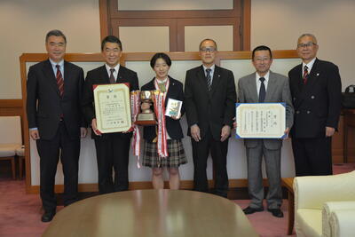 一覧へ 卓球部女子が知事表敬訪問を行いました。 投稿日時: 2023/05/01 管理者TS 令和4年度全国高等学校選抜卓球大会個人戦において全国優勝した、本校普通科3年高橋愛依さんが知事表敬訪問を 行いました。