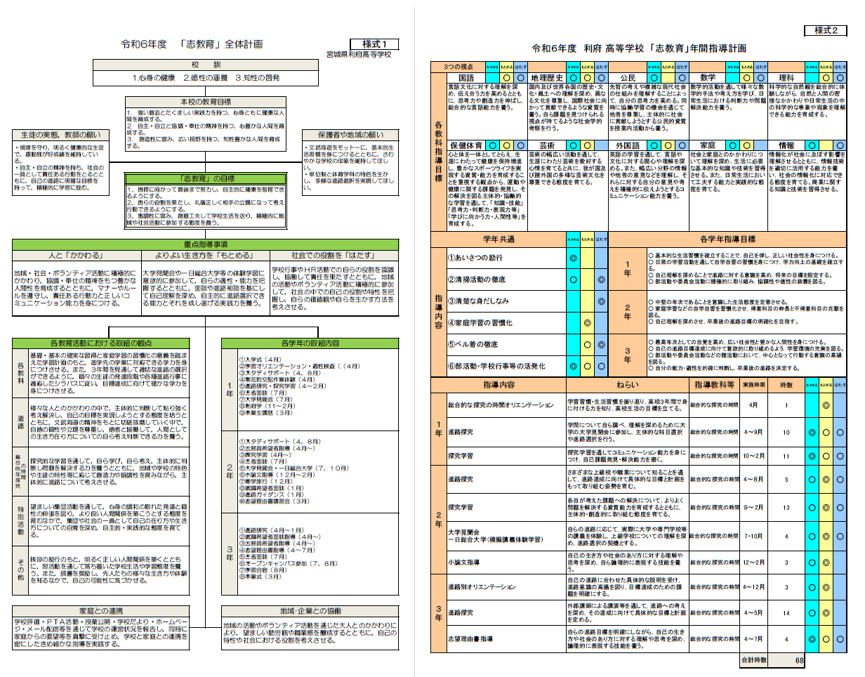 R6年度「志教育」全体計画・年間指導計画を公表しました。