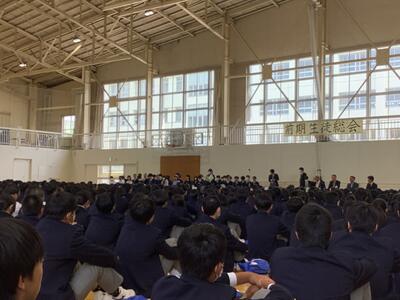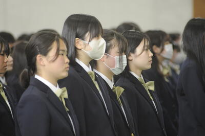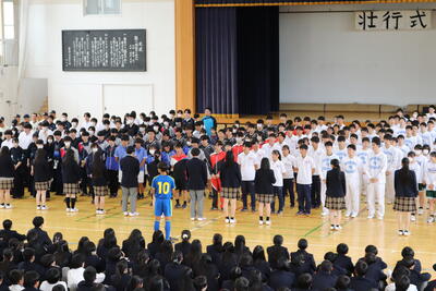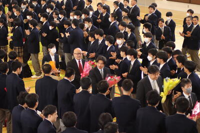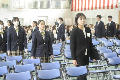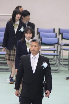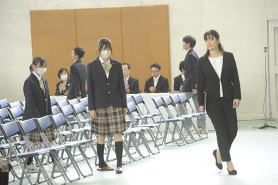 3年次の保護者、スポーツ科学科1・2年次生、本校職員の参観の中、3年次生は堂々とした姿で