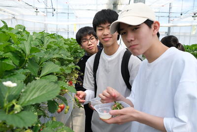 本校より、1年次普通科1クラスが花粉交配のお手伝いを行いました。