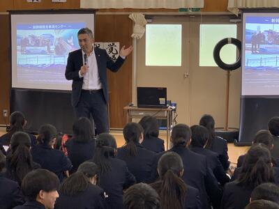 本校のOBである鹿野所長先生より、熱いお言葉を頂きました。