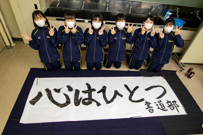 書道部の皆さんに作成してもらいました。 心はひとつ!