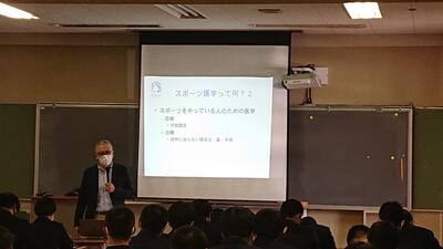 1年次スポーツ科学科 スポーツ医学 東北大学大学院教授永富先生および助手山田先生による講義