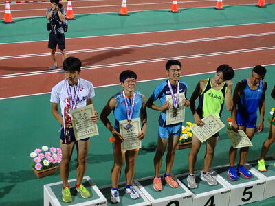 21時過ぎまで実施された八種競技ですが、七種目終わった時点で第二位。最後の種目である1500mで逆転優勝を狙って果敢に攻めました。最後の最後で逆転することは出来ませんでしたが、価値のある全国大会準優勝とすることが出来ました。